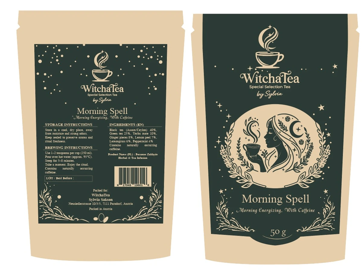 Black tea (Assam/Ceylon) 40%, Green tea 25%, Yerba mate 10%, Ginger pieces 8%, Lemon peel 7%, Lemongrass 6%, Peppermint 4%